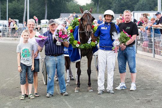 ”Ingen i det lille felt ville slippe min hest til føring,” sagde Kim Hjort efter løbet, men fandt altså en åbning på opløbsstrækningen, da Frank Mikkelsen sendte Twistn Shout til angreb på Thunder Mckija.