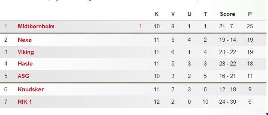 Stillingen i Nordealiagen ser ifølge DBU-Bornholm således ud :