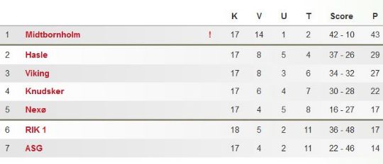 Mens Midtbornholm har sikret sig sejren i rækken, er det endnu uvist hvem der tager andenpladsen. Vinder Hasle mod Knudsker, så går placeringen til vestbornholm. Sætter de point til, så står Viking klar i kulissen, men det kræver så en sejr over Midtbornholm.