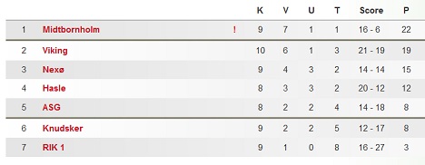 Stillingen i rækken ser i følge DBU Bornholm ud som følger :