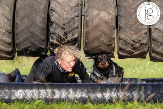 - Man løber en forhindringsbane på tid med flere udfordrende, krævende og ganske mudret forhindringer og lørdagens forhindringer bød bl.a. på vandrutsjebaner, høje spring, forcering af tunneller, svømme gennem sø, kravle gennem mudder, balancebom med nedspring etc. Hunden skal holdes konstant i snor og både hund og hundefører løber med løbesele.