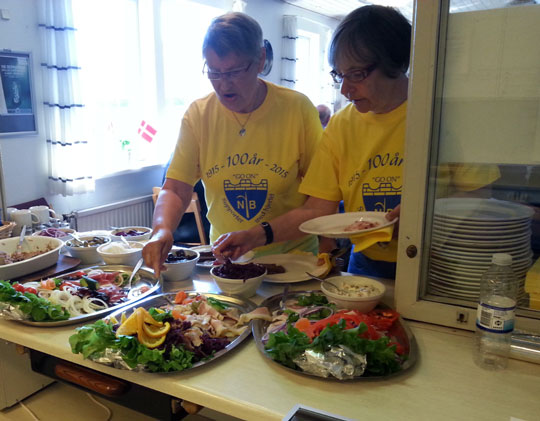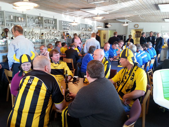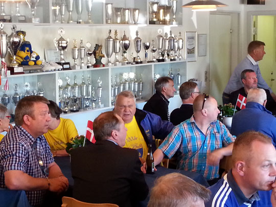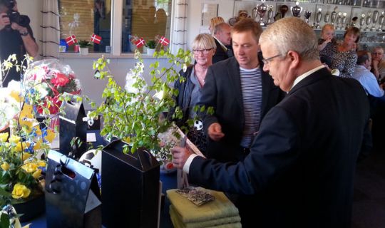 Ved receptionen i klubhuset fredag formiddag mødte mange frem for at ønske tillykke. Som det fremgår af omstående fotos, så skortede det ikke på gaver til den 100-årige, og formand Mikkel Skot-Hansen havde travlt ved gavebordet.