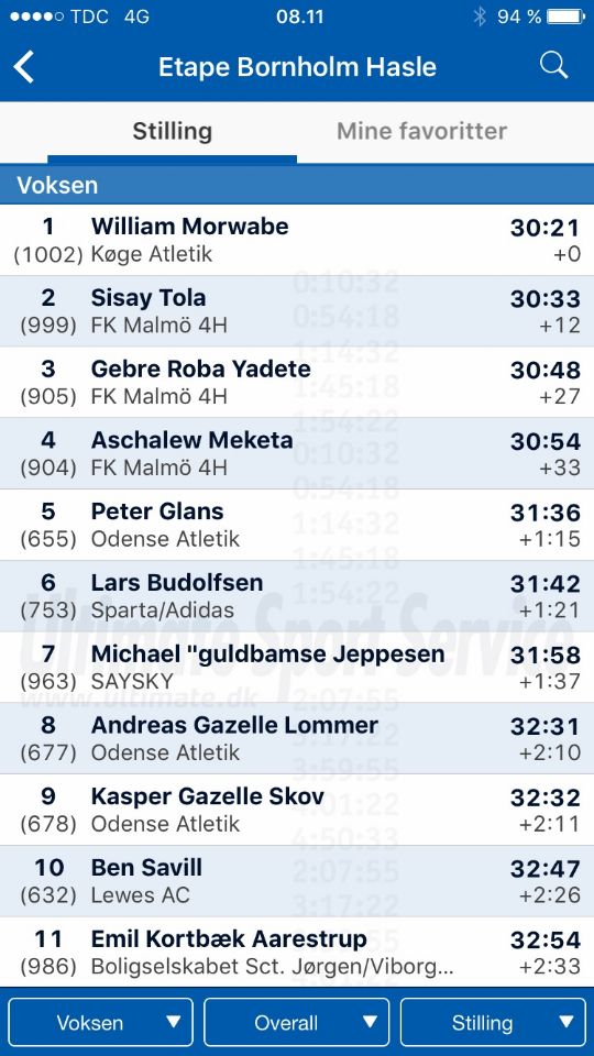 Tidtagningsleverandøren Ultimate.dk leverer hurtige resultater både til pc og ikke mindst den næsten altoverskyggende smartphone, hvor man med få klik med fingeren kan få tiderne på en eller flere favoritter .