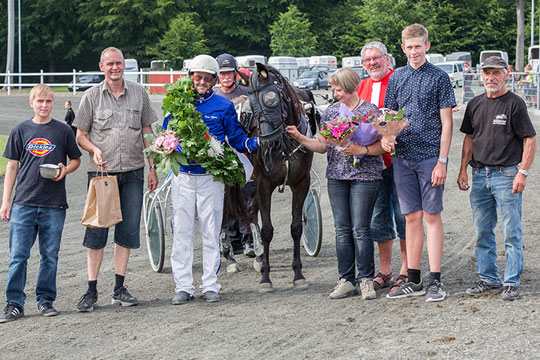 Blandt de mange tilskuere i dag bemærkede sportens kendere den tidligere championtræner Flemming Munch Hansen, på den for længst lukkede travbane på Amager, men det dejligste besøg, var nu den lokale, mangeårige championtræner Frank Mikkelsen.