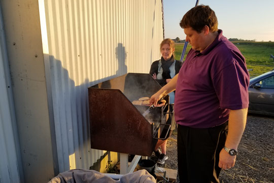 Jess Persson sørgede for at der var grillpølser nok til de mange gæster.Blandt årets store præstationer var også Anna Ice’s sejr Calles Cup, der med 25.000 kroner til vinderen der det bedst betalte løb på Bornholms Brand Park.