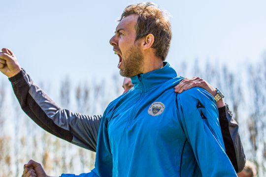 Sportschefen, Flemming Holmegaard jubler over scoringenFORKERTE FAKTA? Bornholm.nu skal ikke offentliggøre faktuelle fejl. Hvis der er noget i denne artikel, du føler er forkert, skal du kontakte os på mail: red@bornholm.nu.