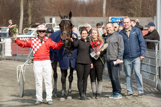 TRAV - Winni Jensen havde lige fået Spot On La Marc hjem til åbningsdagen på Bornholms Brand Park og hesten viste i Revisorfirmaet Dunk Pedersens åbningsløb, at det bliver en rigtig god investering.