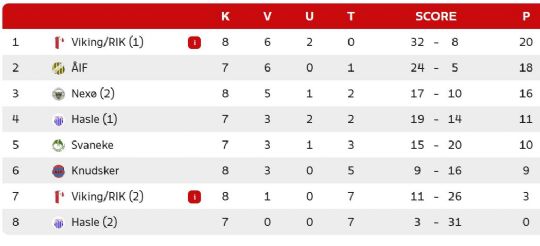 Dermed rykkede Viking/RIK to point foran ÅIF, der i skrivende stund har 18 point på kontoen, men det er på syv kampe mod Viking/RIK´s otte.