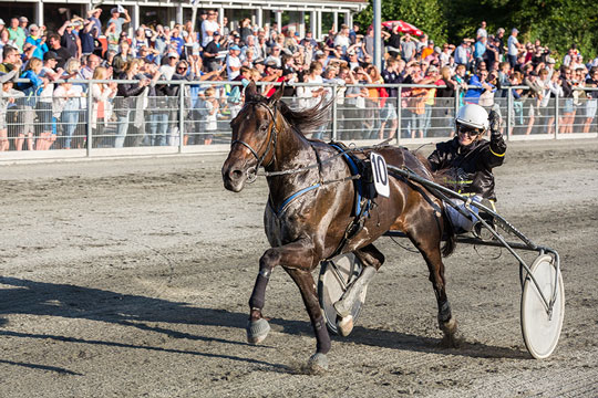 TRAV - For tredje gang blev Wild Jessie kørt af Therese Mikkelsen vinder af Færgens Hoppemesterskab på Bornholms Brand Park.
